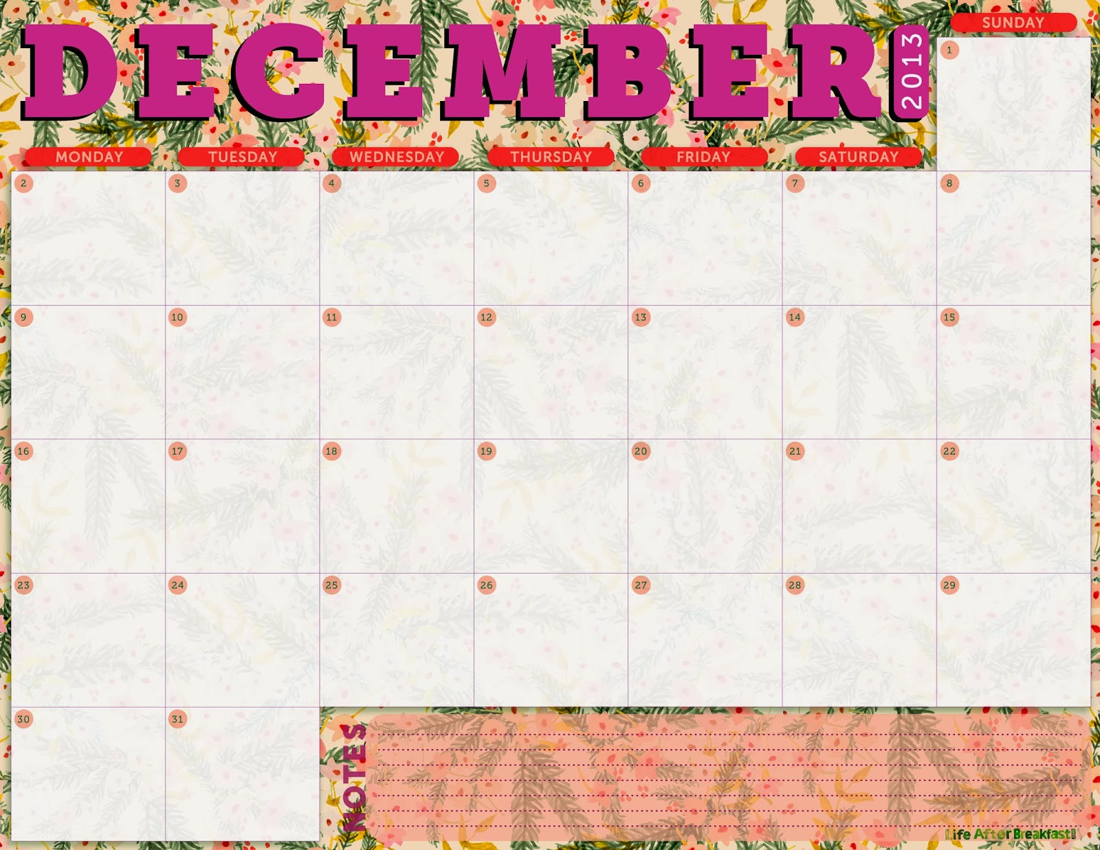December is here! Today actually marks the 2nd year anniversary of my monthly printable calendars. I started in December 2011, and haven’t missed a month since!